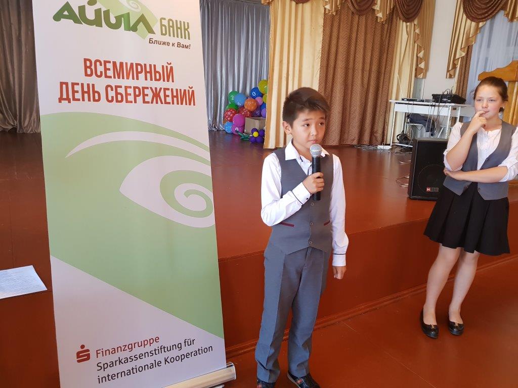 “Айыл Банк” ААКтын Кара-Балта филиалынын башчысы Асхат Касымбаев “ушул күн Кыргызстанда уч жылдан бери белгиленип жатканы” жөнүндө окуучуларга айтып берди. Ушул иш чаранын демилгөөчүсү болуп Кыргыз Республикасынын Улуттук Банкы жана Германиянын Сактык кассаларынын фонду саналат. “Ал эми “Айыл Банк” финансы сабаттуулугу менен байланышкандын баарын активдүү колдойт. Бүткүл дүйнөлүк аманаттар күнүнүн максаты – аманаттардын маданиятын жайылтуу жана үйрөтүү болуп саналат. Акчаны топтоо – өз келечекти пландаштыруу жана өз максатына жетүү мүмкүнчүлүгү” – деп Асхат Касымбаев кошумчалап кетти.